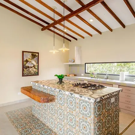 此别墅还配有3间卧室,3间浴室和大厨房,让客人感受到像家一般的温暖. 从房间可以欣赏花园风景.